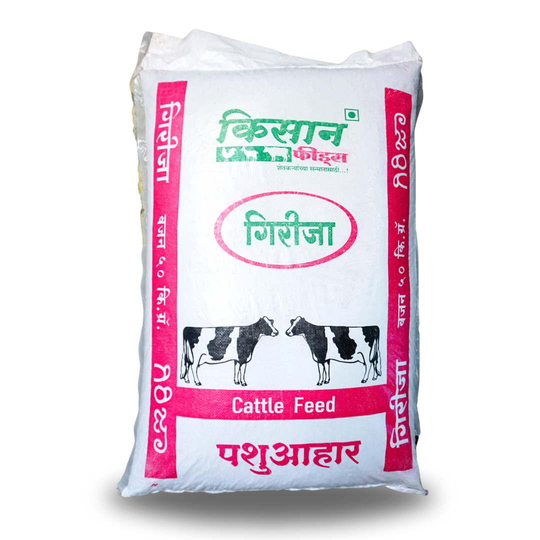 गिरीजा हे किसान फीड्स कंपनीचे विश्वासार्ह आणि दर्जेदार पशुखाद्य आहे, जे विशेषतः 7 ते 10 लिटर किंवा त्याहून अधिक दूध देणाऱ्या जनावरांसाठी तयार करण्यात आले आहे. हे खाद्य जनावरांच्या आरोग्याची देखभाल करत दूध उत्पादनात सातत्य राखते व पोषणतटतेपासून त्यांना संरक्षण देते.