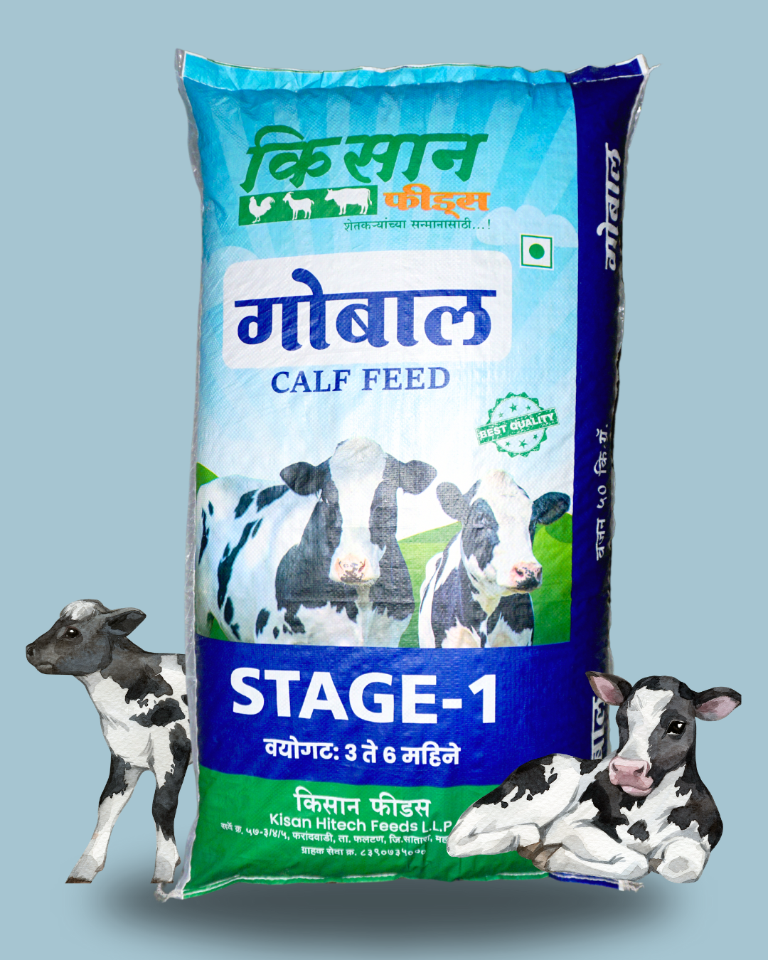 गोबल हे किसान फीड्स कंपनीचे खास 3 ते 6 महिन्यांच्या वासरांसाठी विकसित केलेले संतुलित पशुखाद्य आहे. लहान वयात वासरांची पचनसंस्था विकसित होणे, रोगप्रतिकारशक्ती वाढणे आणि वजनवाढ सुरळीत होणे अत्यंत आवश्यक असते, हे सर्व घटक या खाद्यातून समर्थपणे मिळतात.